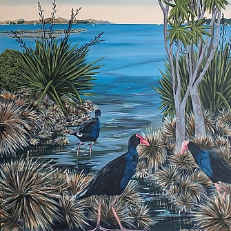 My inspiration is sparked by the sea and New Zealand’s unparalleled native bush, painting more from an instinctual ‘feeling’ of a particular place and time.