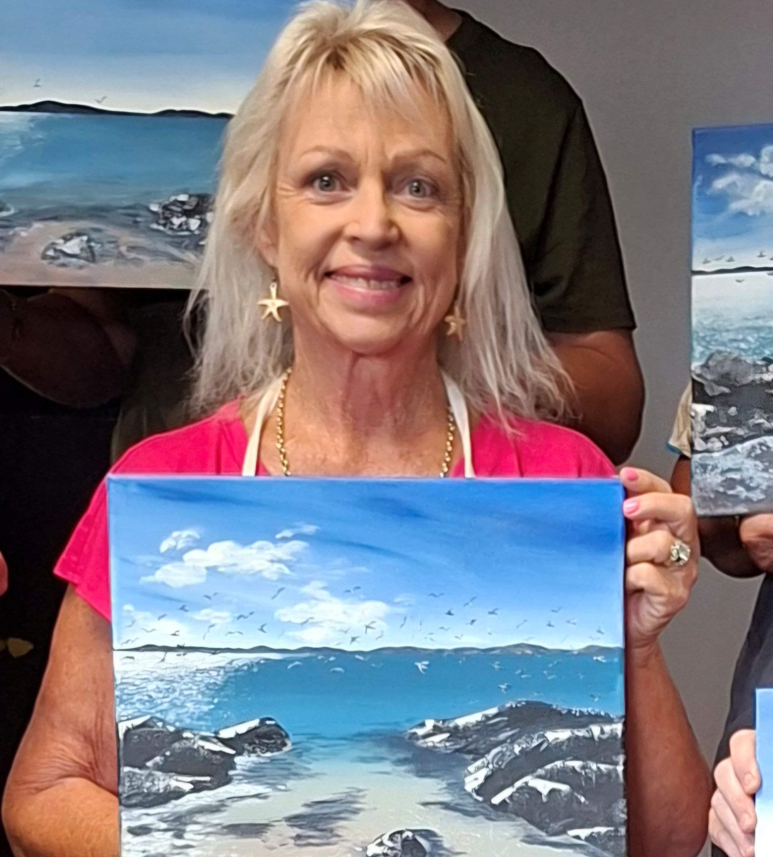 Every painting we have done there is some new technique to learn - perspective, waves, clouds, adding detail, using different brushes and palette knife.